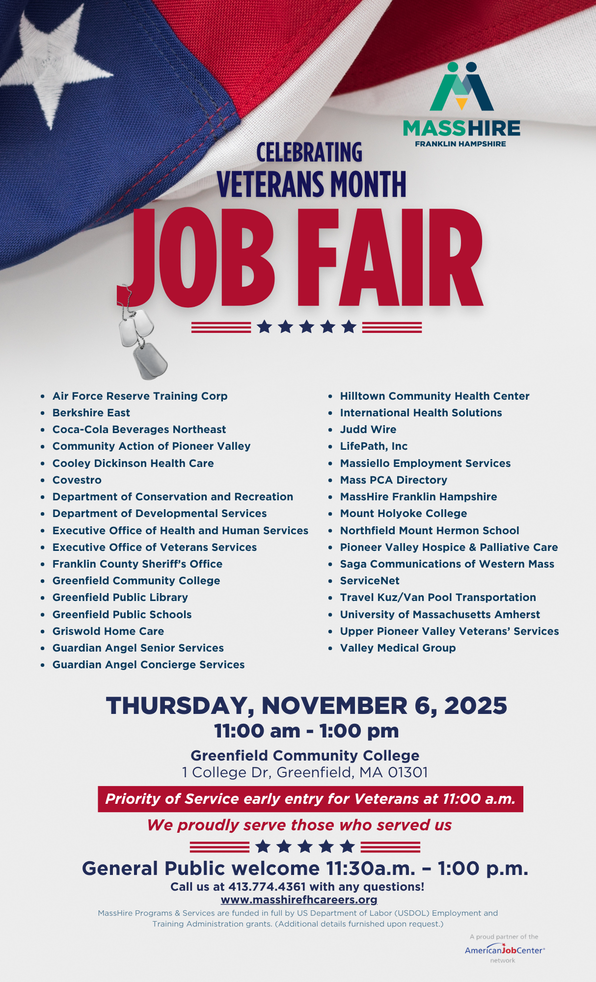 MassHire Franklin Hampshire Career Center provides employment and training services at no charge to job seekers and employers in Franklin County, Hampshire County, and the North Quabbin area. We connect employers and job seekers through a statewide network of employment professionals and services designed to meet the unique needs of each customer.